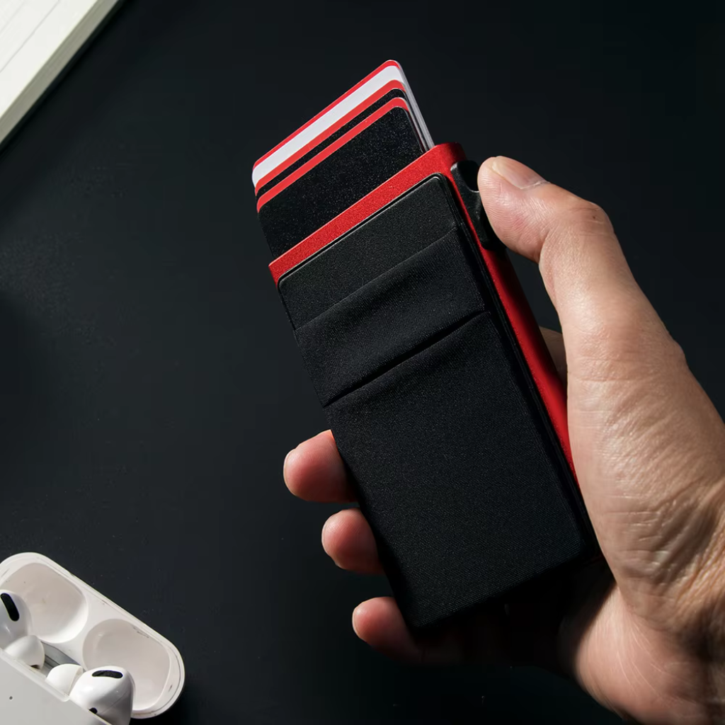 This card holder is designed for those who want to carry more without adding bulk. Its slim aluminum profile fits easily into your pocket, bag, or jacket, offering a minimalist look that feels both modern and practical. At the same time, the expandable back panel provides extra storage space for additional cards or essentials without compromising the sleek overall design.